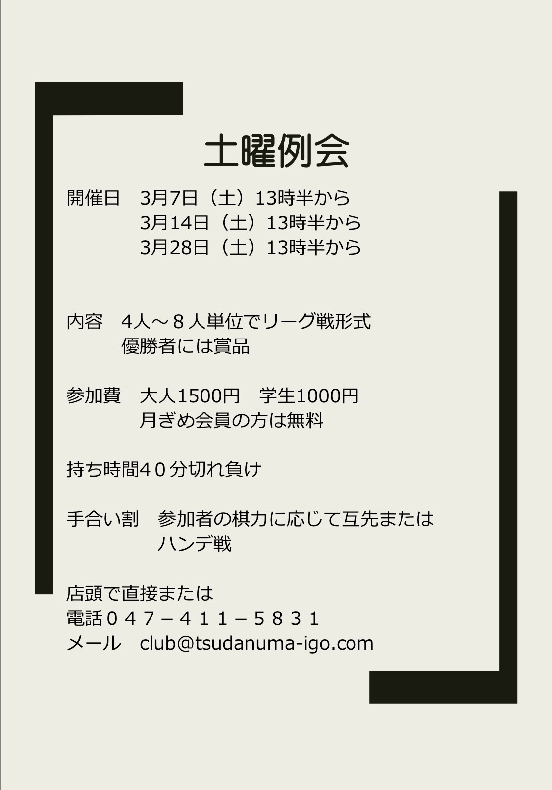 メール club@tsudanuma-igo.com