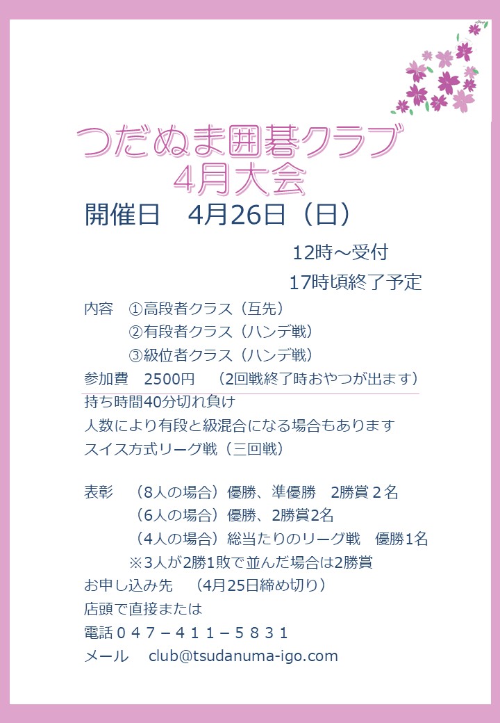 月ぎめ料金の改定と教室月謝会員用のオプション 月ぎめ料金が15000円になります。また教室の月謝会員の方は6000円追加することで他の全ての曜日の一般対局もフリーになります。教室で勉強もできて対局も毎日楽しめるようになるので大変お得です。